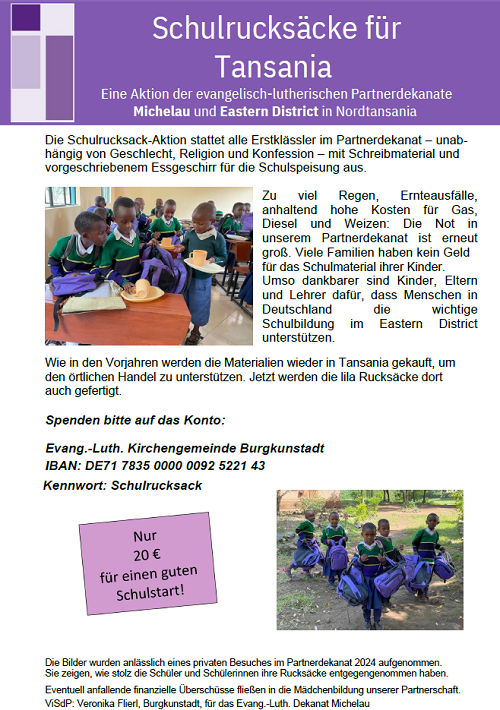 Zusätzlich ist Veronika Flierl für unsere 'Partnerschaft Meru-Diozöse (Tansania)' beauftragt.