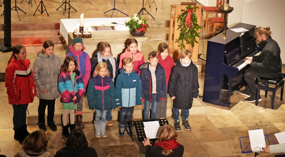 Ein besonders herzerwärmender Moment war der Auftritt der „Flötenmäuse“, die unter der Leitung von Susi Schliefer und unter der Begleitung von Erik Flierl am Klavier mit ihrem zauberhaften Spiel zum Beispiel in die bekannte „Weihnachtsbäckerei“ von Rolf Zuckowski entführten.
